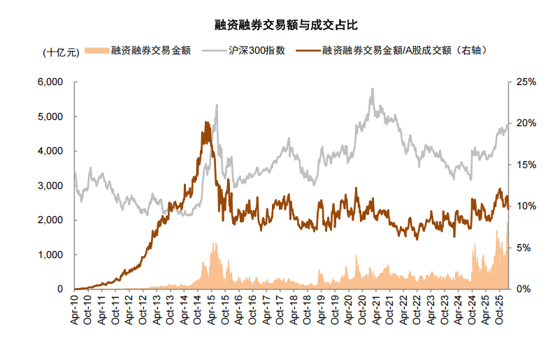 图表4:年初至今两融交易额占A股总成交额均值为10.5%,仍明显低于2015年峰值水平