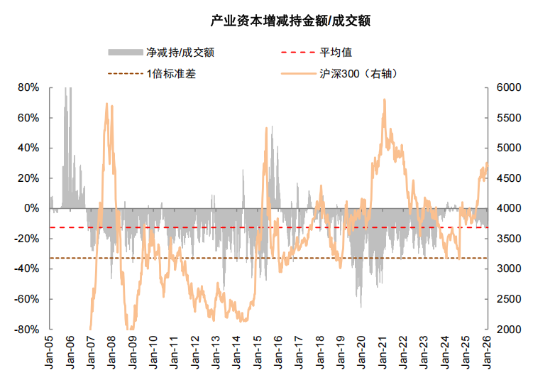图表11:产业资本持续净减持,净减持强度仍低于历史均值